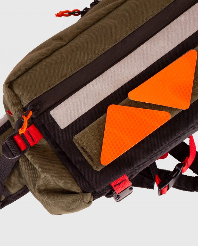 Diseñado para llevar en la espalda, con sistema de doble correa que brinda sujeción y seguridad. Ya sea que pedalees, camines o corras, va a quedar firme y no se va a mover. Confeccionado en Cordura® 1000D de Nylon, 100% impermeable, forma parte de nuestra Línea Premium por su durabilidad y resistencia al desgaste. Los cierres son YKK impermeables y los detalles reflectivos 3M mejoran la visibilidad en condiciones de poca luz. El interior tiene múltiples bolsillos y una gran capacidad para organizar objetos personales. Es compatible con los accesorios Portacelular y Portacámaras Milan, ideal para cámaras o lentes grandes. También se adapta fácilmente al manubrio o al portaequipajes. Para usarla en este último, se requiere el accesorio Portacámaras.