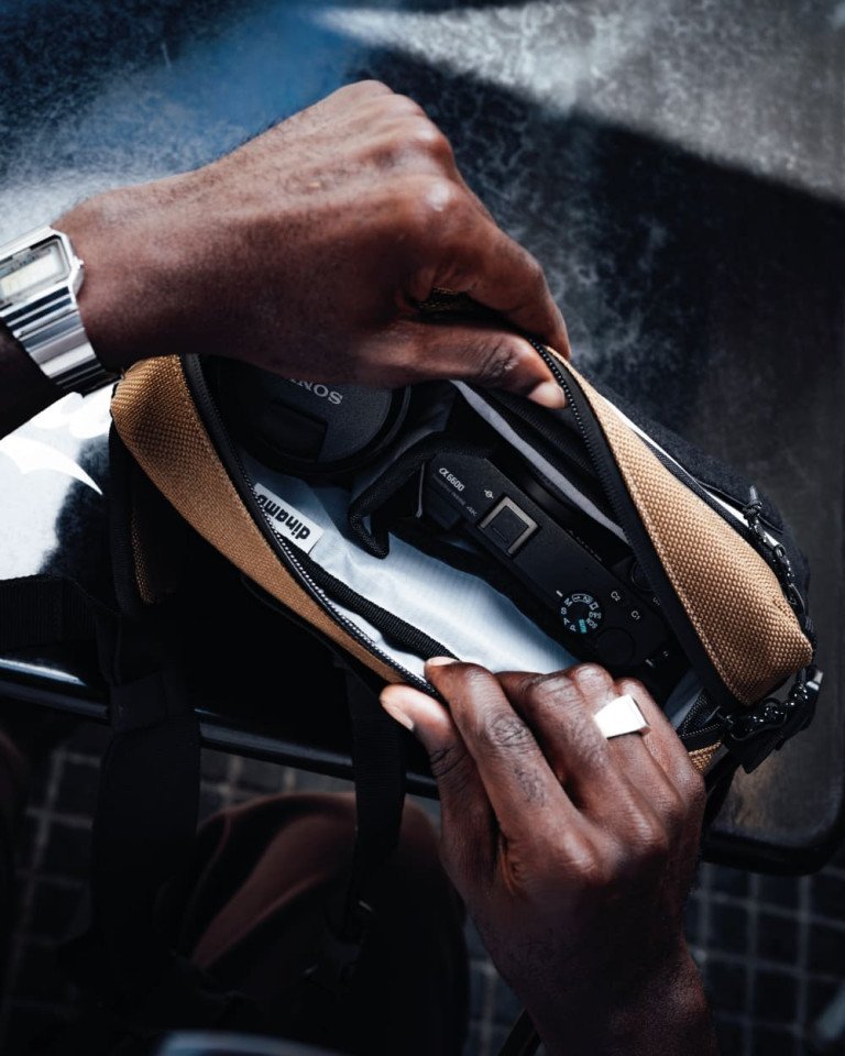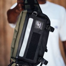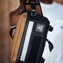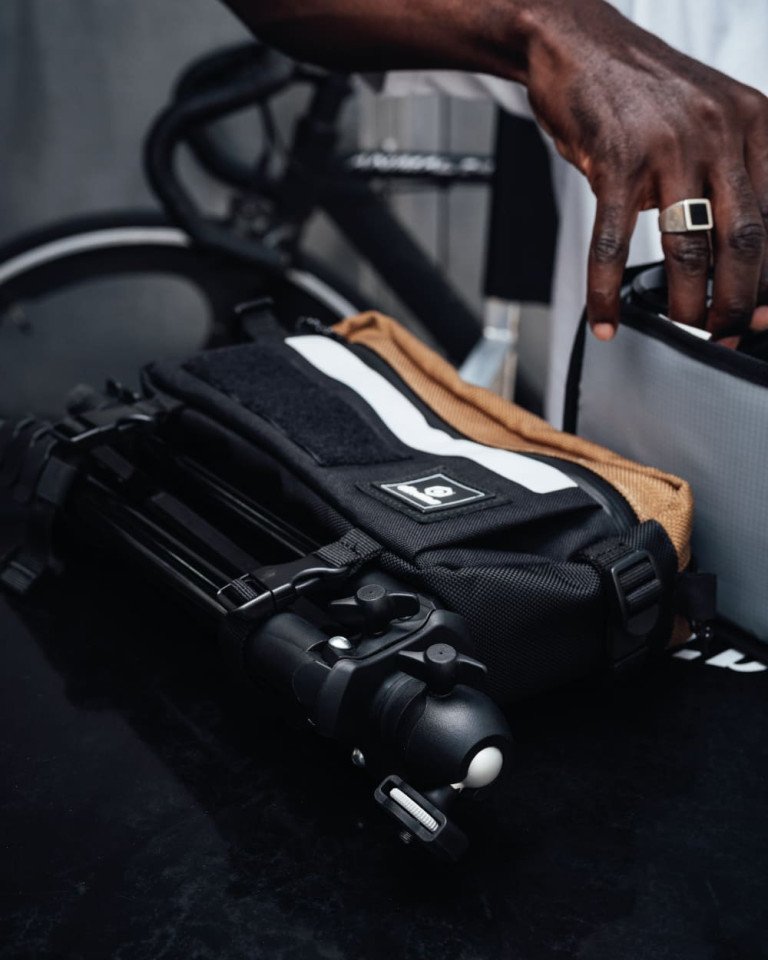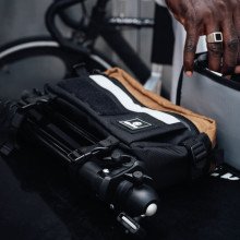 El Turín cambió, en la nueva version RD25 ajustamos proporciones: ahora es más fino y más ancho. Esta modificación, junto con el nuevo diseño de hombreras, mejora el calce y hace que acompañe mejor el movimiento. Los materiales internos son más robustos y el producto se siente con más cuerpo. Sumamos hebillas de regulación laterales para comprimirlo según la carga. El triángulo reflectivo ahora es más resistente a los golpes. Agregamos tiracierres y mantuvimos lo que ya funcionaba bien: las hebillas inferiores para carga extra, los múltiples bolsillos, el compartimiento trasero para u-lock y la hebilla de sujeción. La nueva versión también puede adaptarse al manubrio de la bici. Las hombreras se guardan en el compartimiento trasero y, desde ese mismo espacio, salen los velcros y la hebilla inferior que permiten fijarlo. Para usarlo de esta forma, lo ideal es contar con el portacámara: le da estructura al producto y lo mantiene firme mientras pedaleas. Se compra por separado, un accesorio indispensable para llevar todo protegido y organizado.