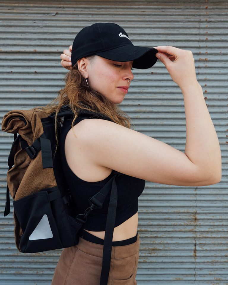 Fabricada en Gabardina 6oz 100% Algodón. La visera es rígida, el panel frontal está reforzado para darle cuerpo al producto. El ajuste es con una hebilla y se puede regular. La hicimos en tres colores: Negro con bordado gris claro. Rosa con bordado rosa. Gris oscuro con bordado rosa. Este producto no tiene detalles reflectivos porque para la bici fomentamos el uso del casco.