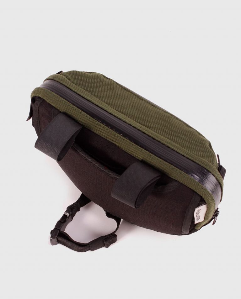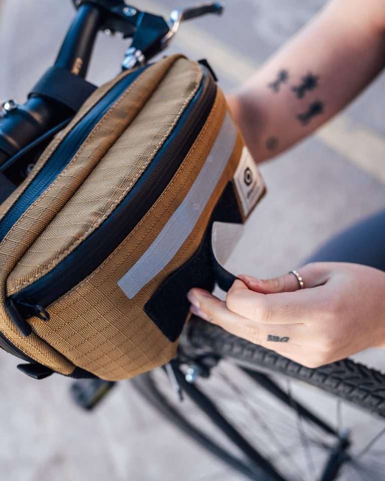 La Egan 1000 está fabricada con Cordura Nylon 1000D, textil premium de gran durabilidad y alta resistencia a la tracción, desgarro y abrasión. Tiene doble correa para que el producto no se gire cuando lo llevás puesto en la espalda. Velcro frontal con reflectivo 3M vial donde también podés ajustar luces o lo que quieras. Los cierres son YKK Impermeables. El bolsillo frontal tiene estructura rígida igual que la Egan Clásica. Es un producto increíble que tiene dos cuerpos principales y bolsillos internos para organización de objetos personales. Ideal para las cosas esenciales del día a día y también más, por ejemplo te puede entrar una camperita rompevientos o una botellita de 500 Ml. Cuando está vacía es pequeña pero podés llenarla y convertirla en un mini bolso. Este producto es muy versátil y se adapta fácilmente al manubrio de tu bici.